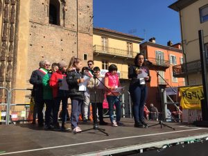 Anche quest’anno, grazie alla collaborazione fra l’Amministrazione comunale e il presidio “Angelo Vassallo” di Libera, nella mattinata di venerdì 16 marzo i bambini ed i ragazzi delle scuole di Chivasso e del chivassese si sono ritrovati, insieme a numerosi amministratori ed ai rappresentanti delle forze dell’ordine, per gridare il loro “no” alla presenza strisciante della criminalità organizzata nelle nostre comunità. Un corteo vociante e colorato ha attraversato la città, partendo dalla piazza del Municipio, intitolata al Generale dei Carabinieri Carlo Alberto Dalla Chiesa, fino a raggiungere piazza della Repubblica, dove è stato letto questo lungo elenco di quasi mille nomi, tutti i nomi delle vittime delle mafie.