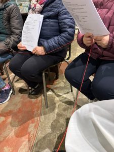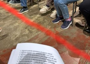 Alcuni “segni”: un gomitolo di filo rosso che srotolandosi dalla croce posta al centro, raggiunge tutti, creando una “rete” di fraternità resa possibile dalla Parola di Cristo; la recita del Padre nostro la preghiera elevata al cielo  con le mani alzate dell’orante che chiede “sia santificato il suo nome,