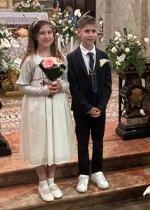 Beatrice e Matteo, che hanno ricevuto la Prima Comunione, hanno percorso il cammino nella comunità, accompagnato dalle catechiste, dalla intera comunità, dai “compagni di viaggio” dei laboratori di catechesi, e nel tempo liturgico particolare, che stiamo vivendo, il tempo pasquale, offre all’intera comunità, occasione di “formare”, “dare forma” anche alla fede comunitaria, ripensare al cammino di fede di ciascuno e quello all’interno della comunità.