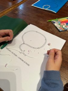 Primo laboratorio: “Tra grani e perline”, a cui seguiranno altri incontri ed attività (sono previsti laboratori di varie tipologie, ad esempio Laboratorio ri-conoscenza, Laboratorio di pace, Laboratorio piante per asciugare il pianto, Laboratorio di incontro, Laboratorio con le ali…) nella consapevolezza che “tutti siamo chiamati” a costruire comunità di fede, ad “accompagnare”, a camminare e lavorare insieme con gioia e serenità, per vivere il Vangelo, testimoniando.