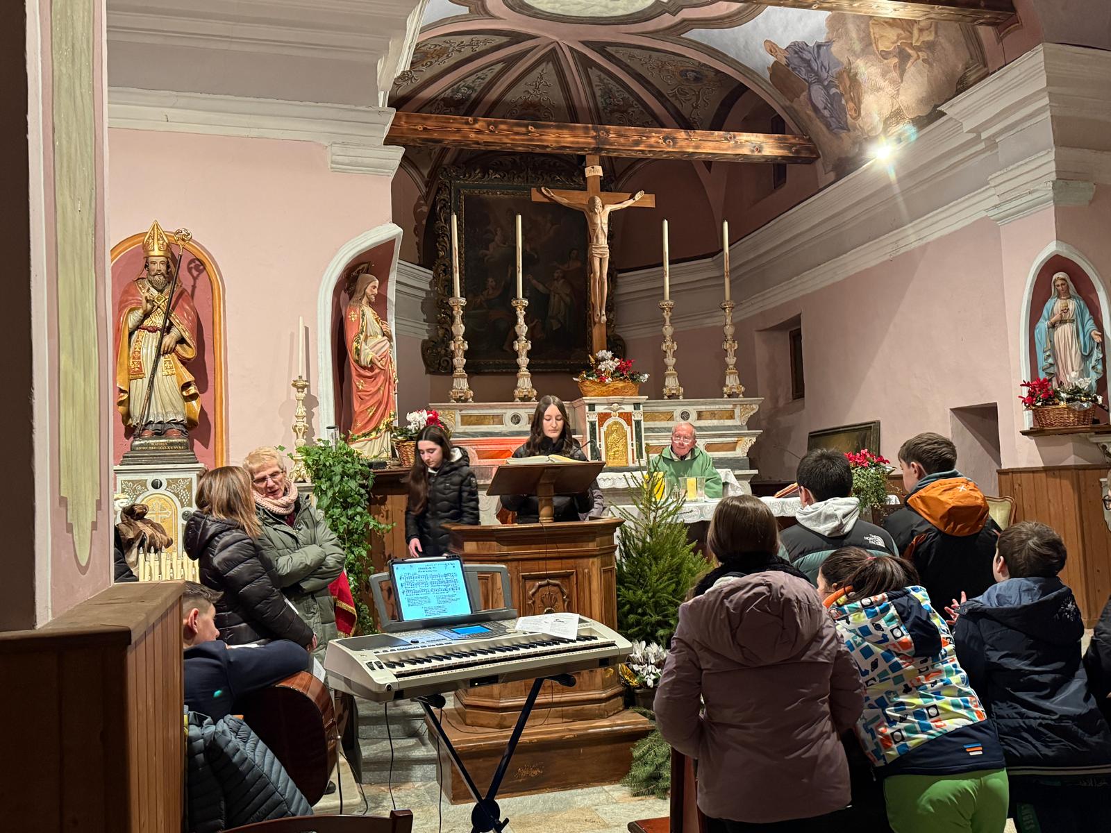 La Santa Messa delle ore 18 è stata animata dai ragazzi e dalle cantorie, che hanno portato nella chiesetta di San Nicolao le loro voci, la musica e un entusiasmo contagioso, molto apprezzato dai fedeli presenti.
