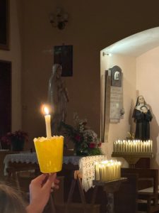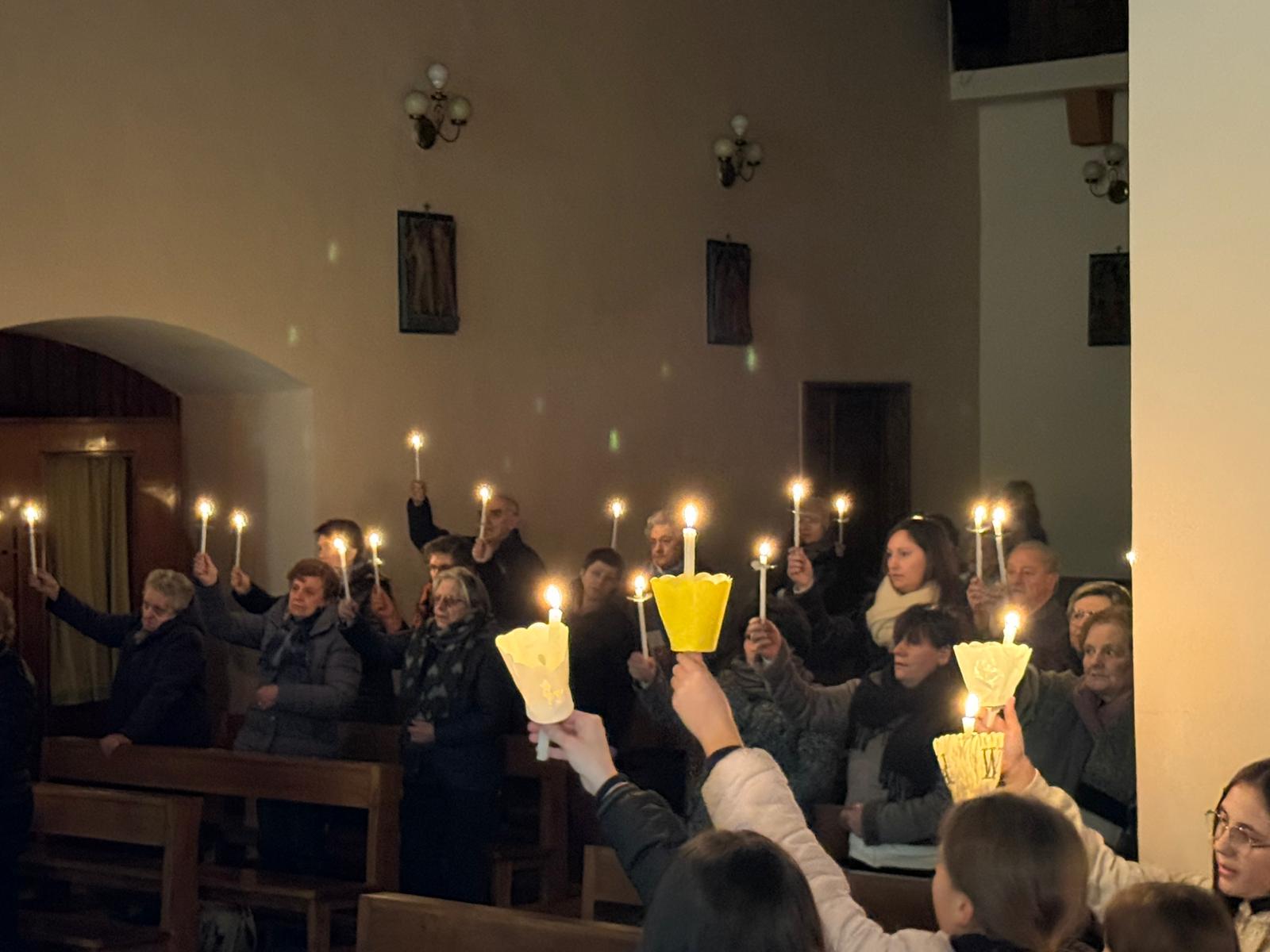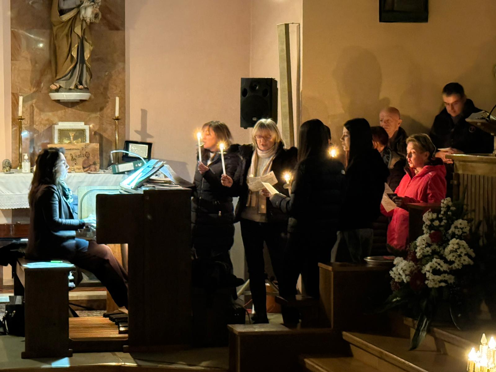 La serata ha raggiunto il suo momento più toccante con il canto dell’Ave Maria, accompagnato dalle candele votive accese, un gesto che ha commosso profondamente i presenti.