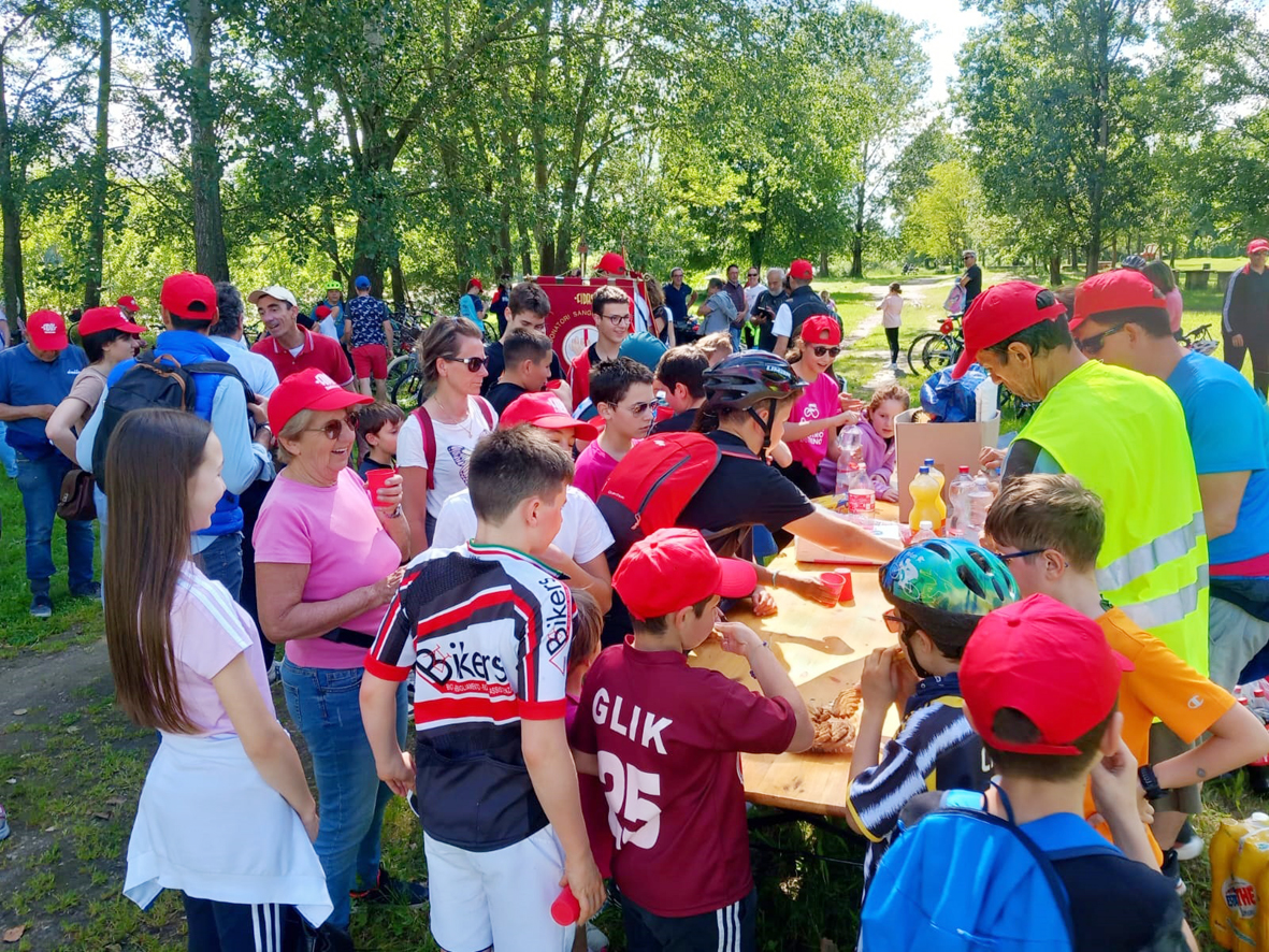 Una sostanziosa merenda preparata dai volontari Fidas attendeva i ciclisti. Al termine del rifocillamento i ragazzi, guidati dagli animatori, hanno giocato, mentre i due presidenti dell’associazione dei donatori di sangue, Stefano Clerici e Alberto Barbaro, hanno brevemente illustrato la loro attività – che non sempre, purtroppo, basta a soddisfare la domanda degli ospedali – e detto delle difficoltà nel reperire giovani che siano interessati a questa forma di solidarietà. “Vengono una volta, per provare, e poi non li vedi più!”, è stata la sconsolata conclusione. Il dono del sangue è indubbiamente un grande atto d’amore nei confronti del prossimo, ma, purtroppo, molti in buona salute e nella fascia d’età giusta non rispondono agli appelli che le associazioni deputate alla raccolta lanciano nel corso dell’anno.