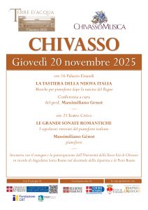 L’appuntamento è articolato in due momenti: alle 16 a Palazzo Einaudi si terrà la conferenza sulle musiche per pianoforte scritte dopo la costituzione del Regno d’Italia, mentre alle 21 al Teatro Civico è in programma il recital pianistico.