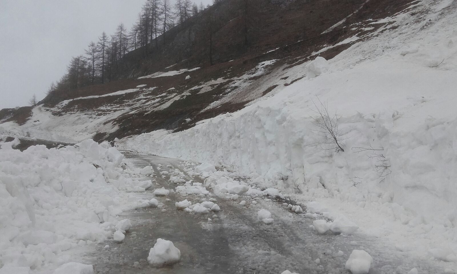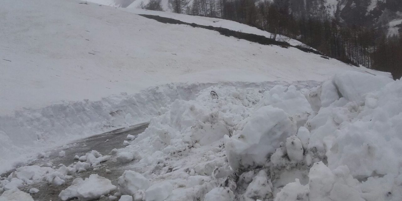 I lavori sono rallentati dalla presenza di ben dieci slavine nel tratto sterrato che dal Colletto porta ai 2.178 metri del Colle, che sarà la Cima Coppi del Giro 2018.  Nella zona d’alta quota dalla Margaria al Colle le slavine alte sino a 6-7 metri, occupano un fronte di 50-60 metri, inglobando oltrettutto tronchi di alberi e massi. È previsto che i cantonieri lavorino anche venerdì 4 e sabato 5 maggio per liberare la strada dall’imponente massa nevosa con le pale meccaniche, visto che la fresa impiegata nei giorni scorsi non riesce a operare quando l’altezza del manto nevoso è eccessiva e nella neve sono presenti tronchi e massi.