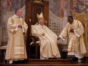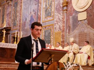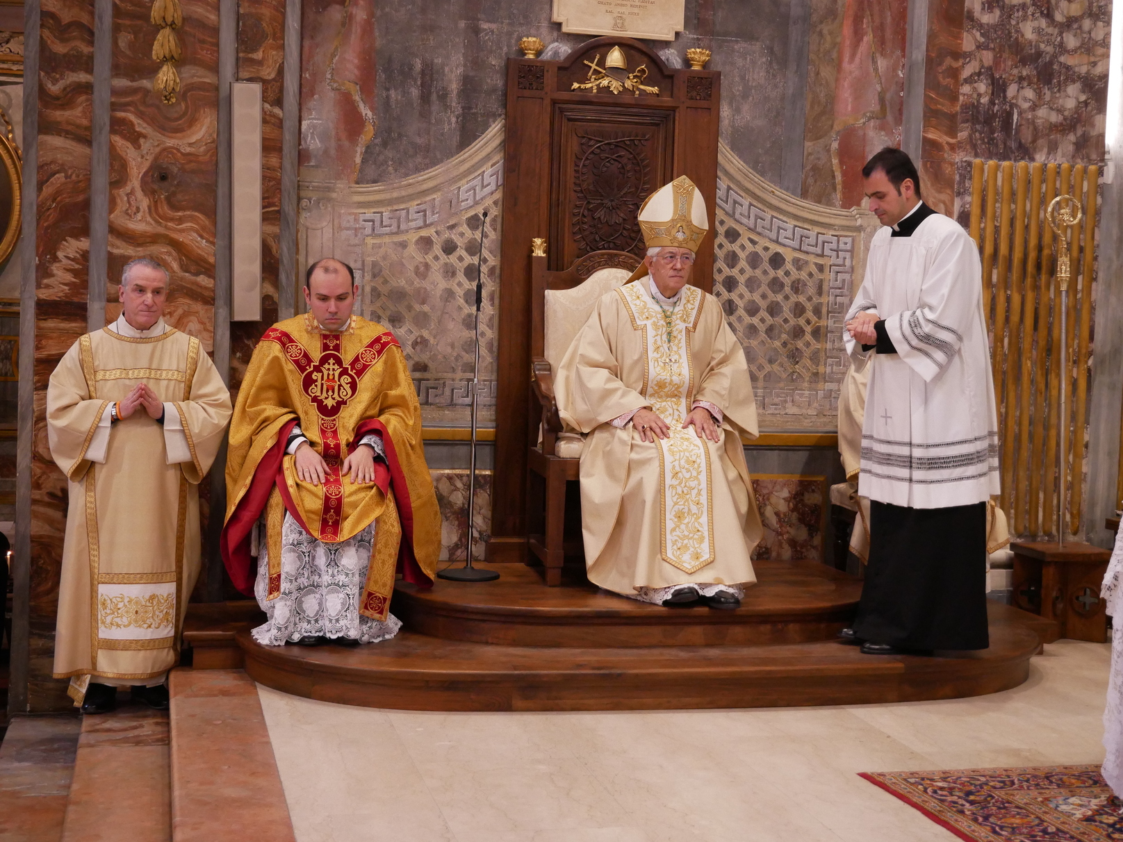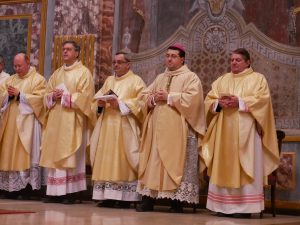 Tutto questo si realizza, in particolare, nella Liturgia, culmine di questo “incontro con Cristo” (Desiderio desideravi, 10) e diventa possibile per l’immenso dono dell’Ordinazione: “la tua umanità” – ha ricordato Mons. Edoardo – “è presa da Dio attraverso le mani della Chiesa e tu vieni trasformato ontologicamente, nella profondità del tuo essere… Tu agirai come sacerdote nella persona di Cristo… pronunciando parole non tue, compiendo gesti non tuoi, attraverso i quali avviene un prodigio divino, un nuovo inizio, in cui è racchiuso tutto il mistero della salvezza”.