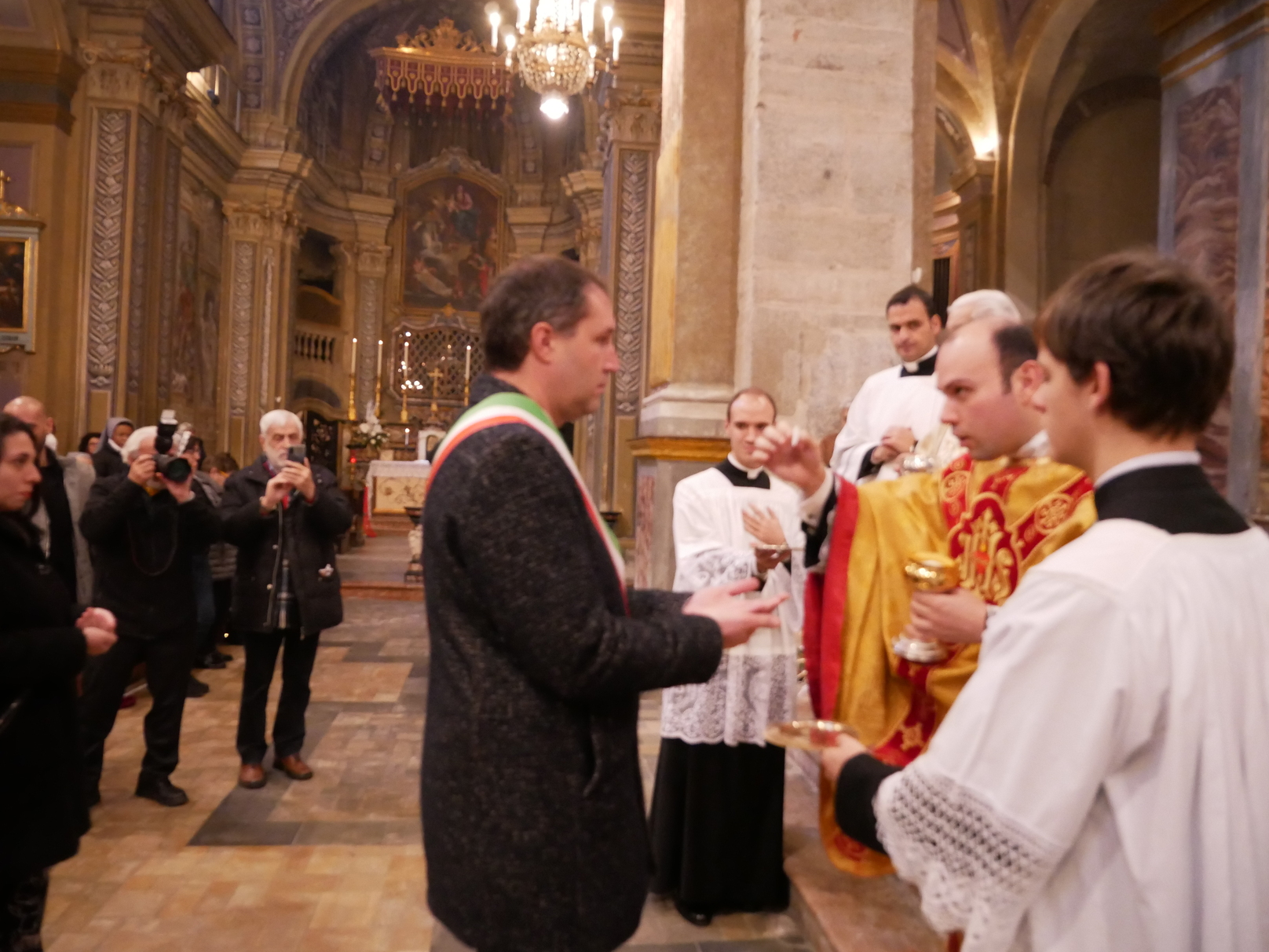 Concludo sottolineando come il Presbiterio fosse particolarmente numeroso, con le presenze del Vicario Generale della Diocesi, Mons. Gianfranco Cuffia, che ora è altresì Rettore del Seminario diocesano; del suo predecessore, l’attuale Vescovo di Biella, Mons. Roberto Farinella, si è già detto. Presenti anche tanti Consacrate e Consacrati che vivono, operano e pregano in Diocesi. Ospite illustre e gradito Mons. Riccardo Battocchio, Rettore dell’Almo Collegio Capranica, in Roma.