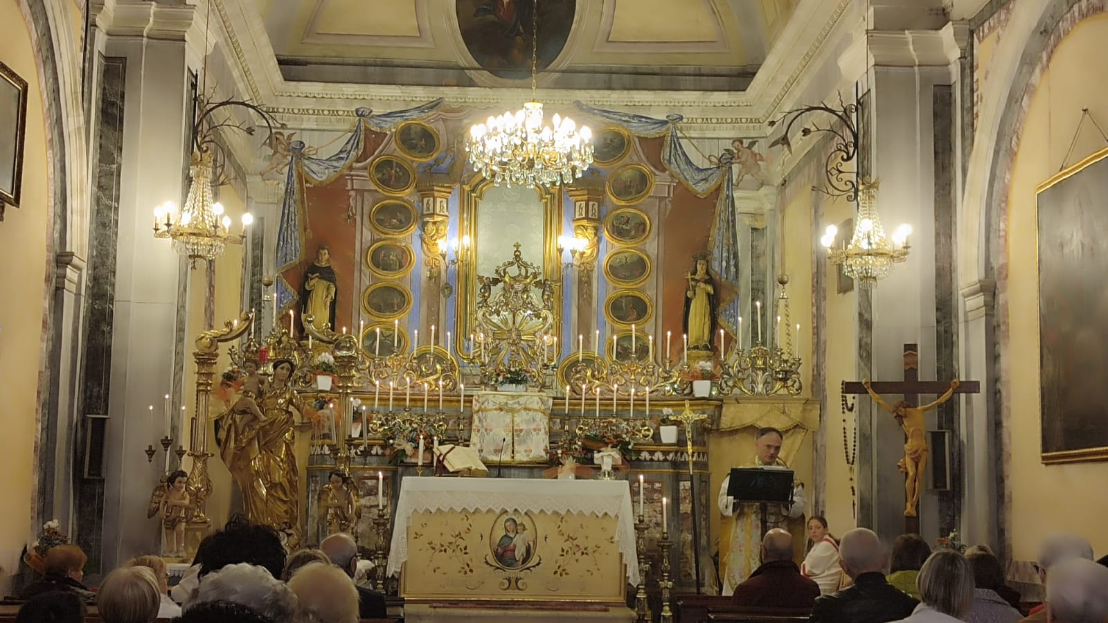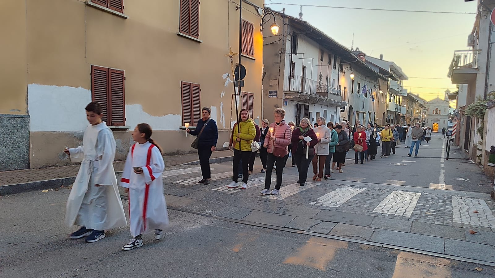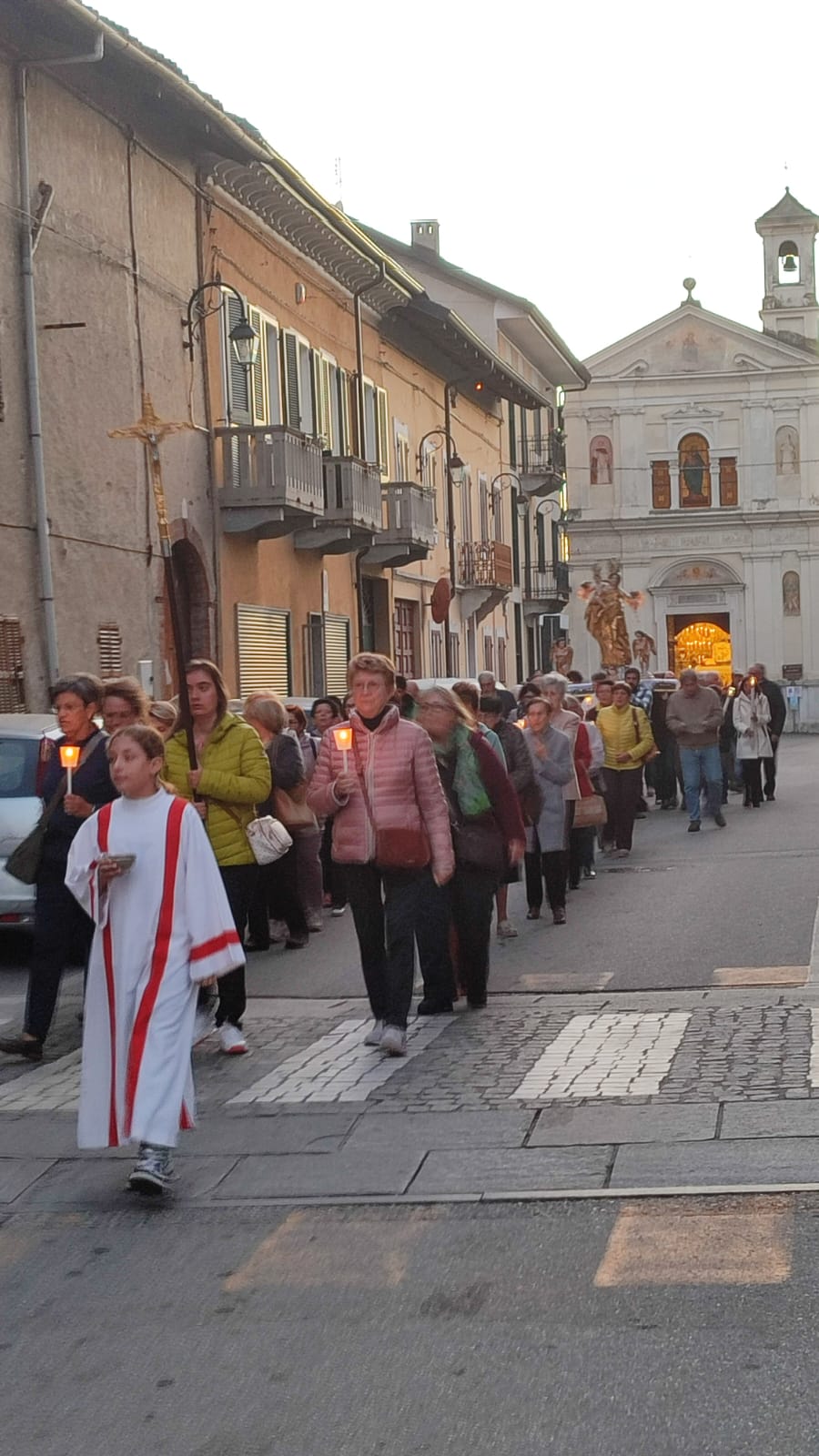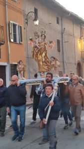 La Liturgia della domenica si è concluso con la processione della statua della Vergine, processione che si è snodata per via Rosario fino alla piazza Martiri, ritornando poi alla Chiesa, mentre una luce sempre più sfumata lasciava spazio ad una oscurità crescente rotta dalle tremuli fiammelle delle candele in processione.