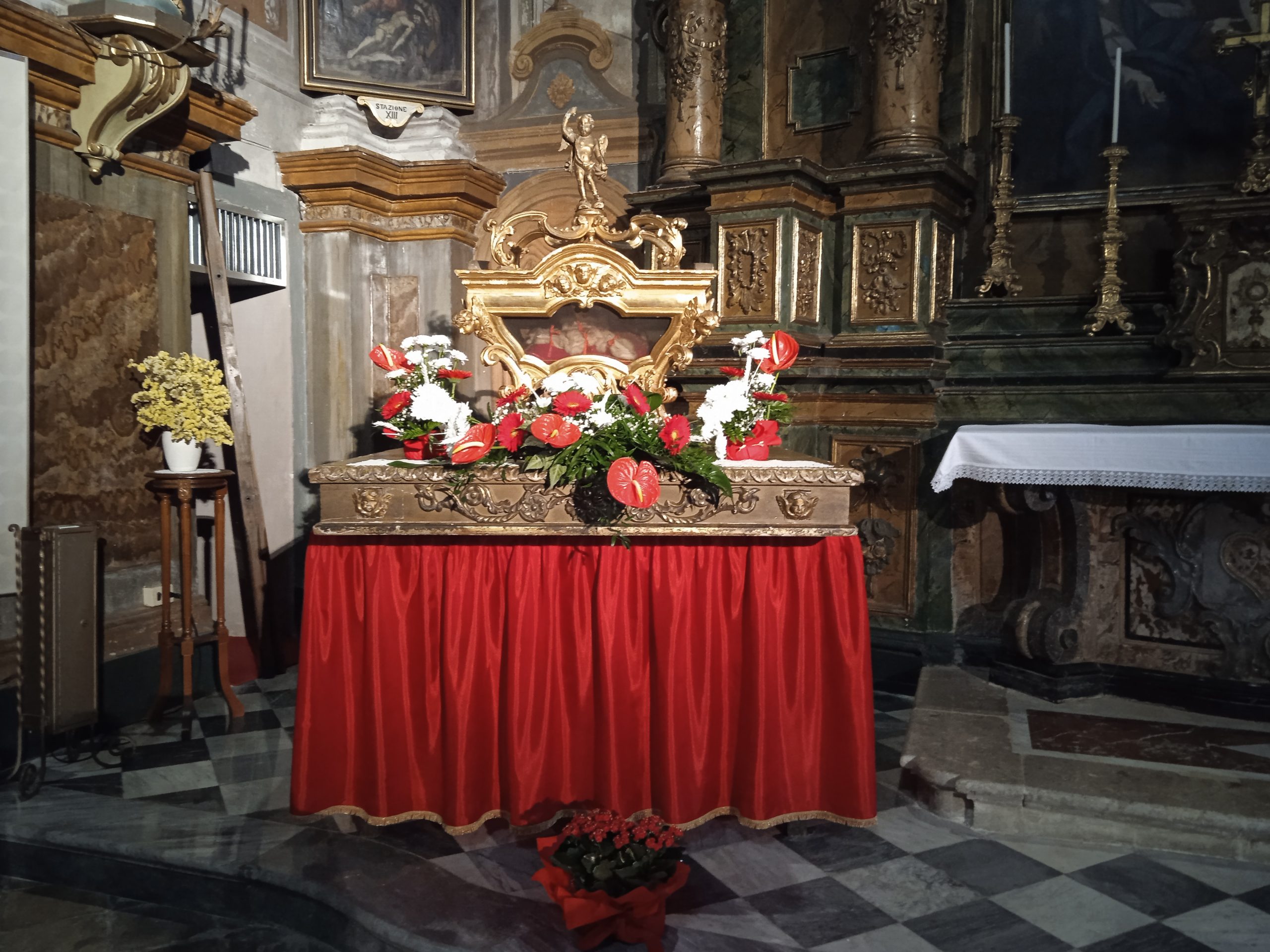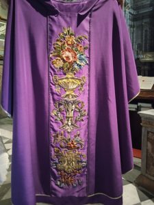 A sua volta ha voluto omaggiare la Parrocchia di Feletto regalando Casula e Pianeta finemente ricamate dalle suore di clausura di Pinerolo recanti il suo motto “Deus Caritas est