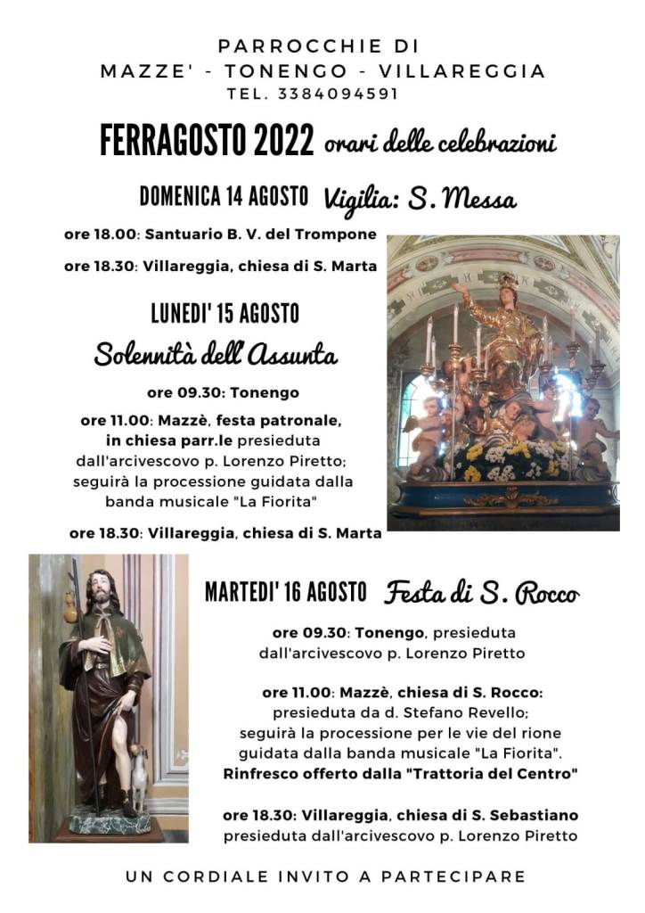 Ore 11.00 Mazzè chiesa San Rocco presieduta da d. Stefano Revello; seguirà la processione per le vie del rione guidata dalla banda musicale La Fiorita