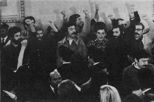 Gli imputati delle Brigate Rosse alla prima udienza del processo.