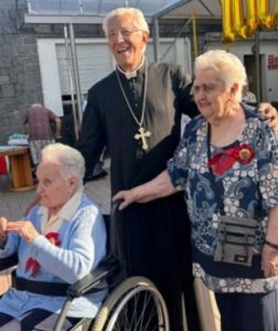 Prima di fare ritorno a Ivrea, il Vescovo Edoardo non ha perso l’occasione di una breve visita alla Casa di Riposo Opera Pia Glaudo di Rueglio, per porgere i suoi particolari auguri a due ospiti della struttura, le neo-centenarie Oneglia Gedda e Angela Chiura.