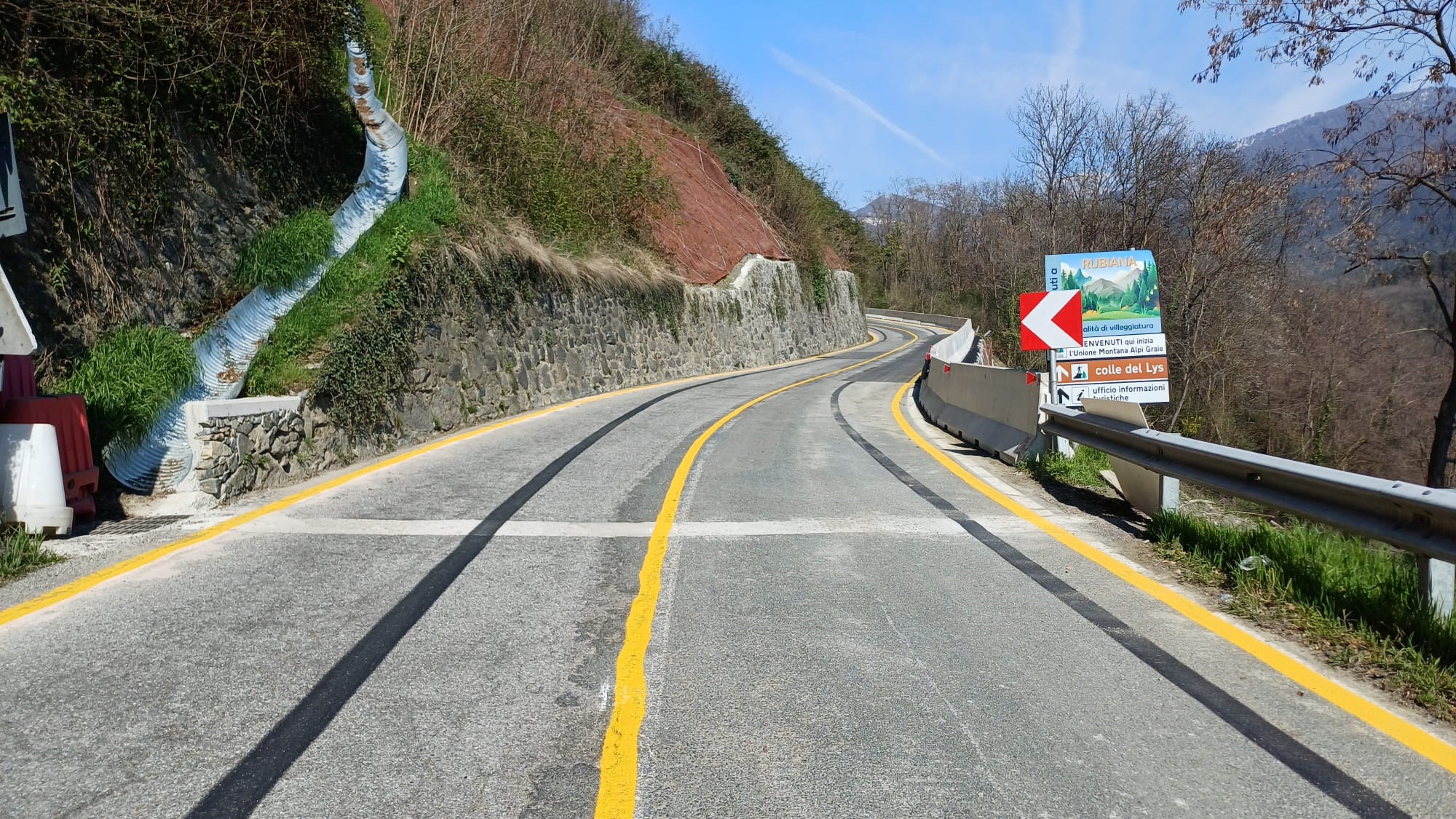 Il tratto di strada interessato dai lavori è quello investito da un movimento franoso durante l’alluvione dell’aprile 2025, per il quale la Città metropolitana di Torino aveva attivato nell’immediato una serie di interventi con procedura di somma urgenza per un importo complessivo di circa 500.000 Euro, consentendo di ripristinare la transitabilità senso unico alternato regolato da un semaforo 24 ore su 24 a partire dal 17 maggio 2025.