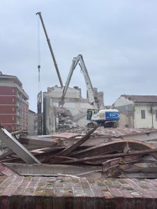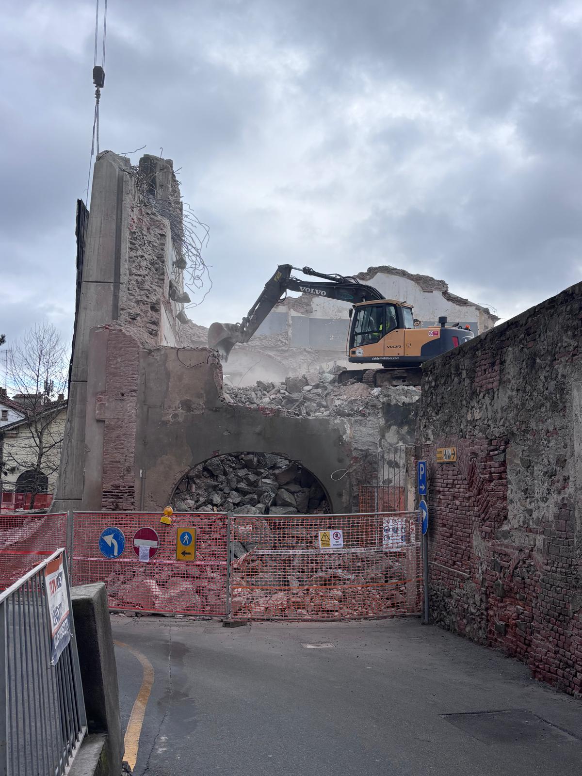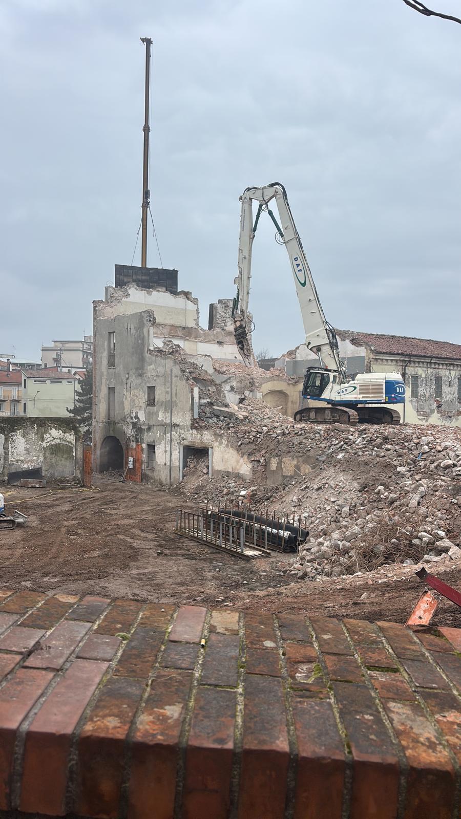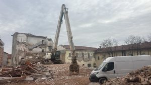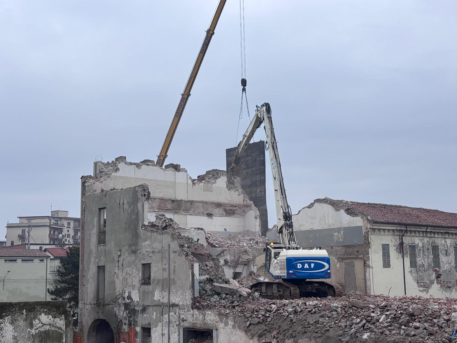 Con qualche difficoltà si sta completando l’abbattimento della struttura, un tempo sede dell’Istituto per geometri, confinante con il Museo “Garda” e Piazza Ottinetti.