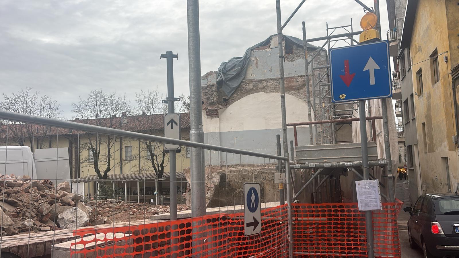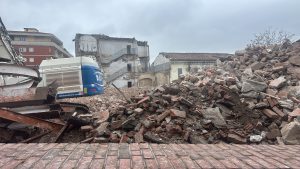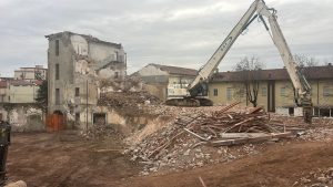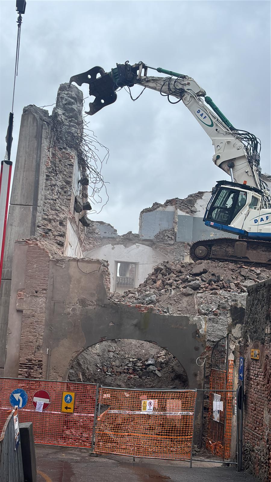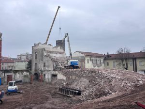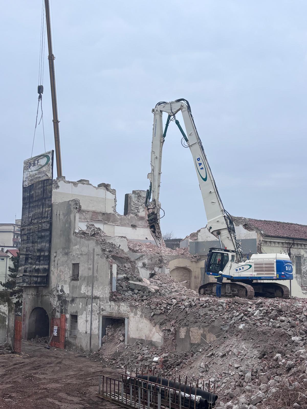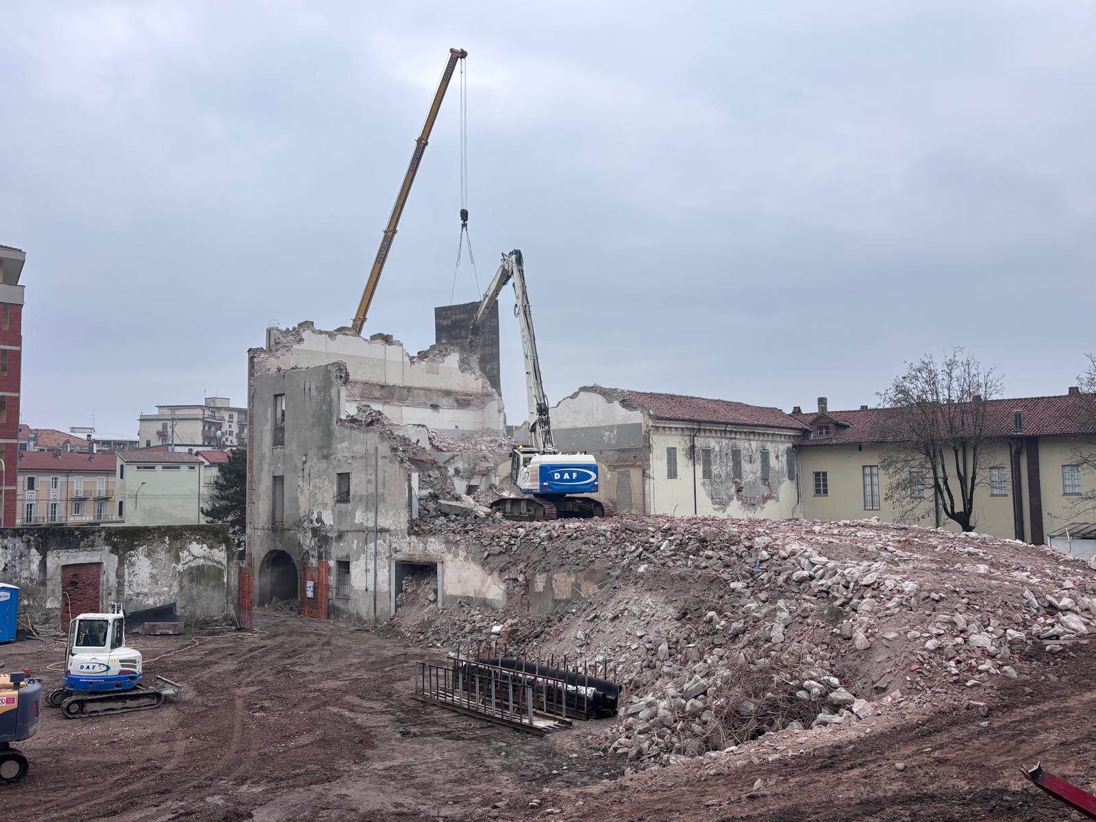 Con qualche difficoltà si sta completando l’abbattimento della struttura, un tempo sede dell’Istituto per geometri, confinante con il Museo “Garda” e Piazza Ottinetti.