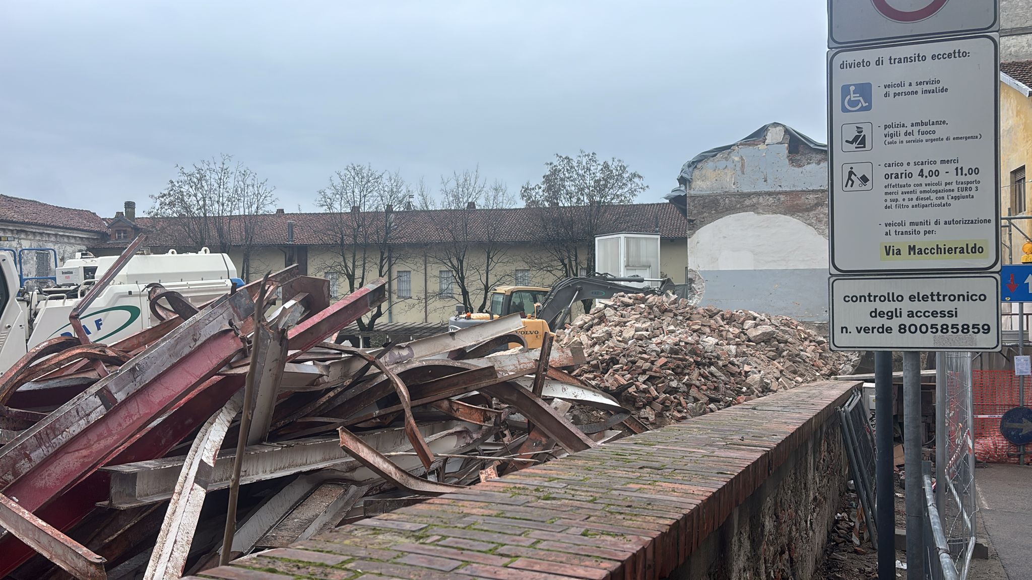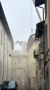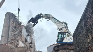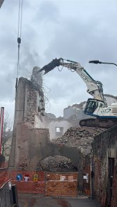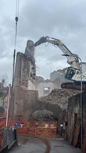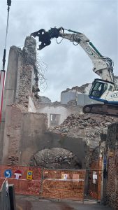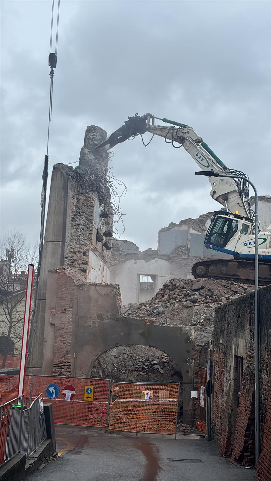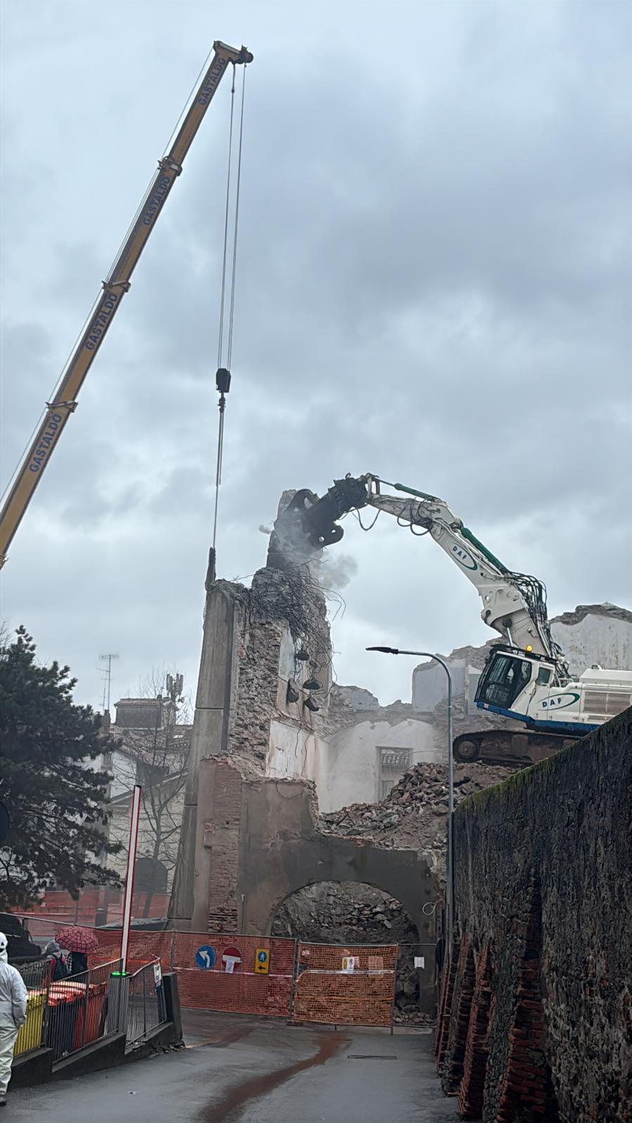 Con qualche difficoltà si sta completando l’abbattimento della struttura, un tempo sede dell’Istituto per geometri, confinante con il Museo “Garda” e Piazza Ottinetti.