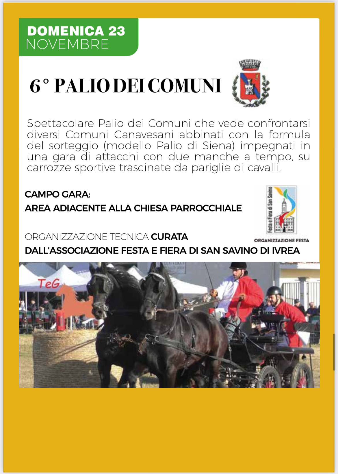Nella quarta domenica di novembre a Montalto Dora tornerà anche il Palio dei Comuni, con 16 paesi canavesani impegnati in spettacolari gare di carrozze trainate da cavalli.