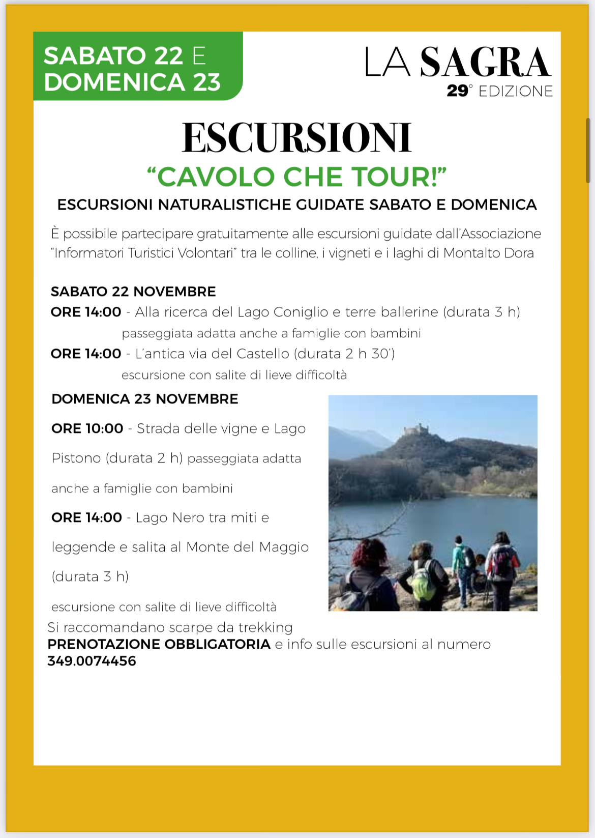 Tra le iniziative più attese figurano anche le escursioni naturalistiche gratuite “Cavolo che tour!” di sabato 22 e domenica 23 novembre. A seconda del percorso e della durata, le gite a piedi sono adatte alle famiglie, ma anche a chi è più allenato, spaziando dal Lago Coniglio con le Terre Ballerine alla Strada delle Vigne intorno al Lago Pistono, dal Lago Nero al Monte del Maggio. Le prenotazioni sono obbligatorie e si ricevono al numero telefonico 349-0074456.