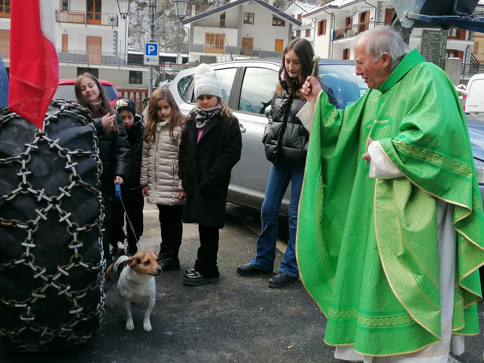 Al termine della funzione, in piazza Battaglione Levanne l’attesa benedizione dei trattori e degli animali ha coinvolto tutti i presenti: c’erano mezzi moderni, di ultima generazione, ma anche mezzi del passato.