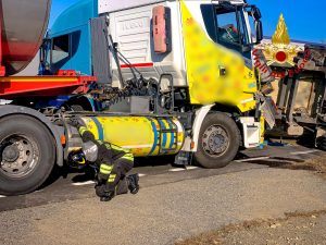 La squadra dei Vigili del Fuoco del distaccamento di Livorno Ferraris insieme a quella del Comando di Torino del distaccamento di Stura più Autogru e nucleo NBCR(Nucleo Batteriologico Chimico e Radiologico) sono intervenute intorno alle ore 14.30 di oggi, mercoledì 5 novembre, sulla SP31bis nel comune di Verolengo (To) per un incidente stradale che ha coinvolto 2 mezzi pesanti, di cui uno alimentato a GNL.