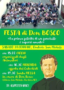 Il mese si concluderà con l’incontro tra i ragazzi del post-Cresima, gli Animatori e i rappresentanti dell’Amministrazione comunale (venerdì 30) e con la Festa di Don Bosco di sabato 31 gennaio, che segnerà anche la ripresa del Catechismo, tra giochi, attività, merenda e la Santa Messa delle 17.30 in San Michele.