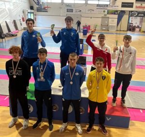 Nella spada maschile Cadetti la vittoria è andata a Fabio Storelli del Circolo Scherma Collegno, secondo posto per Tommaso Cuttica del Circolo Scherma Giuseppe Delfino Ivrea, terzi Matteo Di Giugno del Circolo Scherma Collegno ed Enrico Cussotto dell’Associazione Scherma Pro Vercelli.
