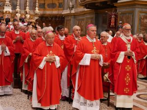 Dunque, un incipit umile e, così, certo idoneo a suscitare una immediata attenzione di cui – se è permesso celiare – c’è stato bisogno perché le successive parole sono state quelle di un intellettuale a tutto tondo, oltre che di un Pastore e, pur rilevandosi l’impegno a ricercare la semplicità nell’esposizione, bisogna riconoscere che oggi si sia udita un’omelia davvero per “palati fini”: sicchè il video permetterà di ascoltare e riascoltare questa lezione davvero istruttiva e capace di estendere il campo dell’analisi, come seguendo cerchi concentrici, dalla figura e dalla testimonianza di Eusebio ai valori che da esse promanano a confortare la società di oggi.